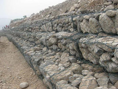1.鍍鋅鐵絲表面包裹一層PVC保護層,然后編織成各種孔徑的石籠網。這層PVC保護層將會大大增加在高污染環境中的保護,并且通過不同顏色的選擇,使其能和周圍環境融合。