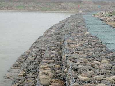 格賓網墊系采用以機編六邊形低碳鋼絲網面制成的網墊,在網墊內填充合乎一定要求的石頭共同構成的防護結構,鋼絲表面處理采用鍍鋅+覆塑雙重不腐。一般的石籠護墊的規格為0.3m厚,2m寬,6m長。